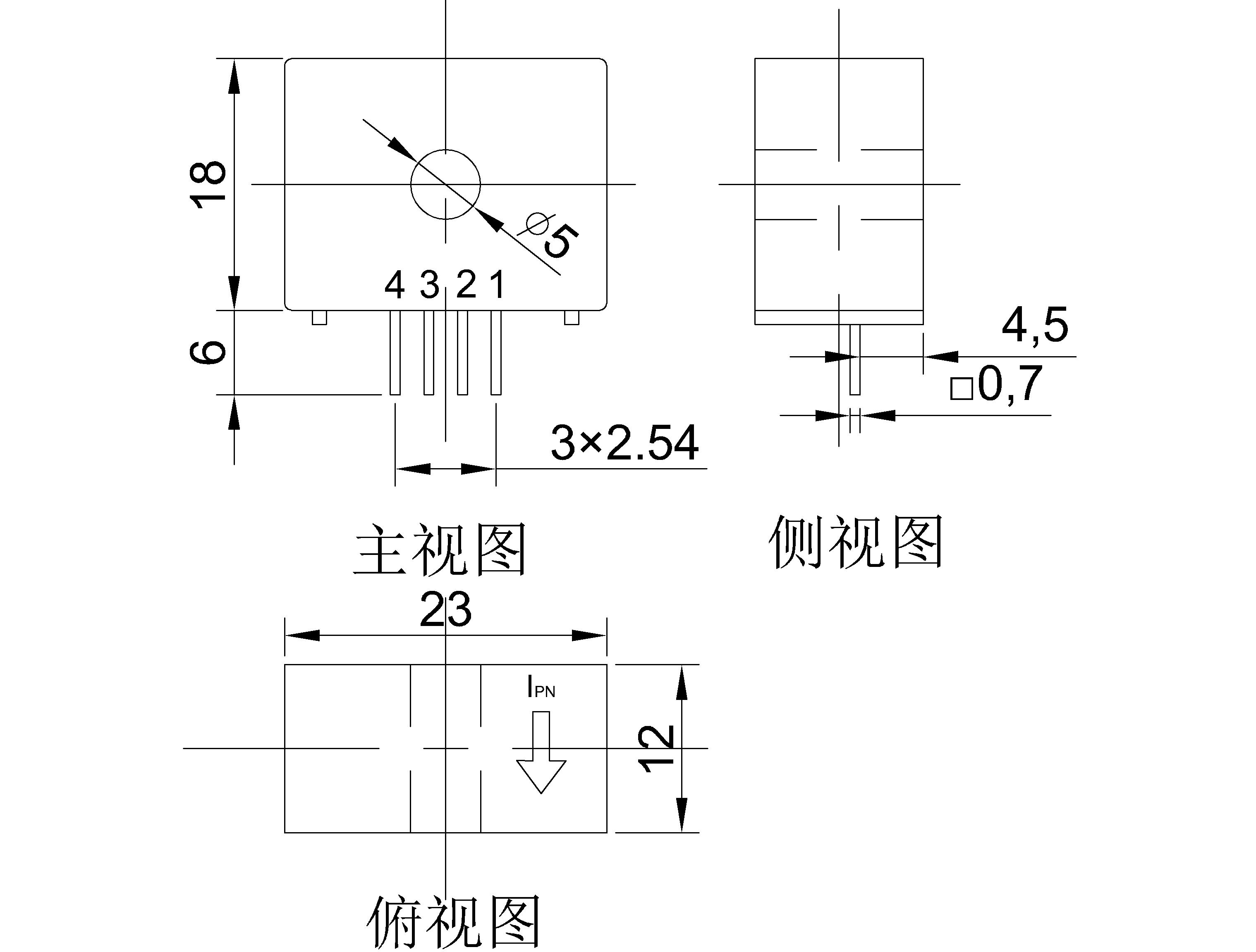 该传感器采用直测式霍尔检测原理工作。原边电流产生的磁通量聚集在磁电路中,并由霍尔器件检测出霍尔电压信号,经过放大器放大,该电压信号精准的反应原边电流。