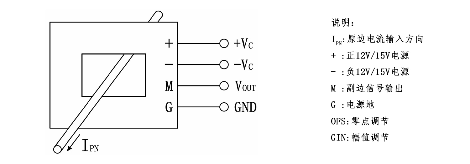 应用磁调制原理研制而成的一种新型电流传感器。通过内部震荡器产生的电流对原边电流进行补偿,达到磁场平衡,此时副边电压便能精确的反应原边电流。